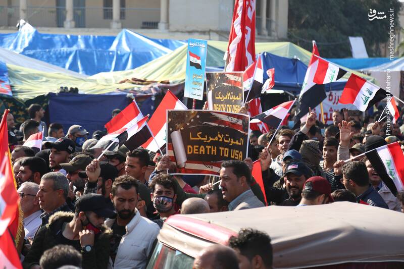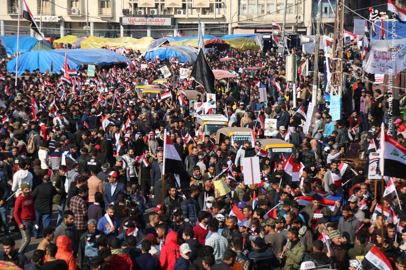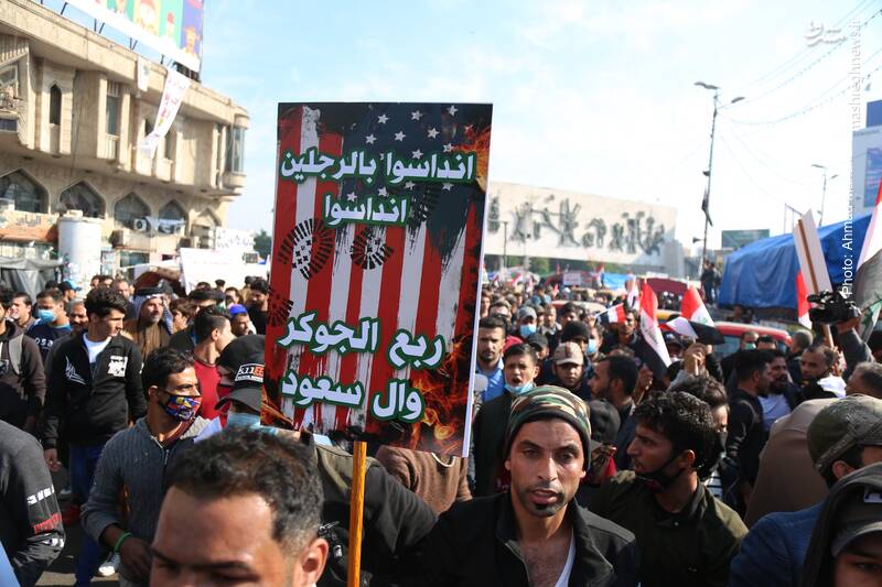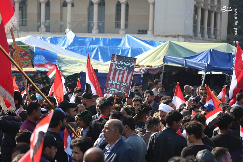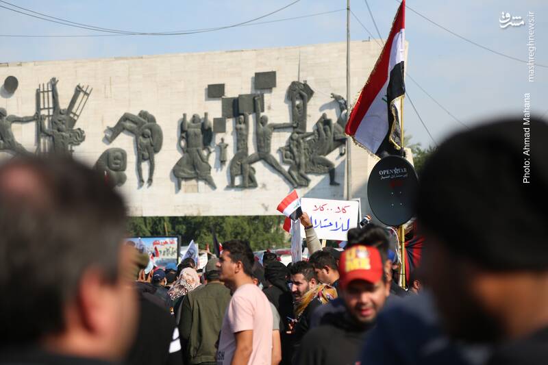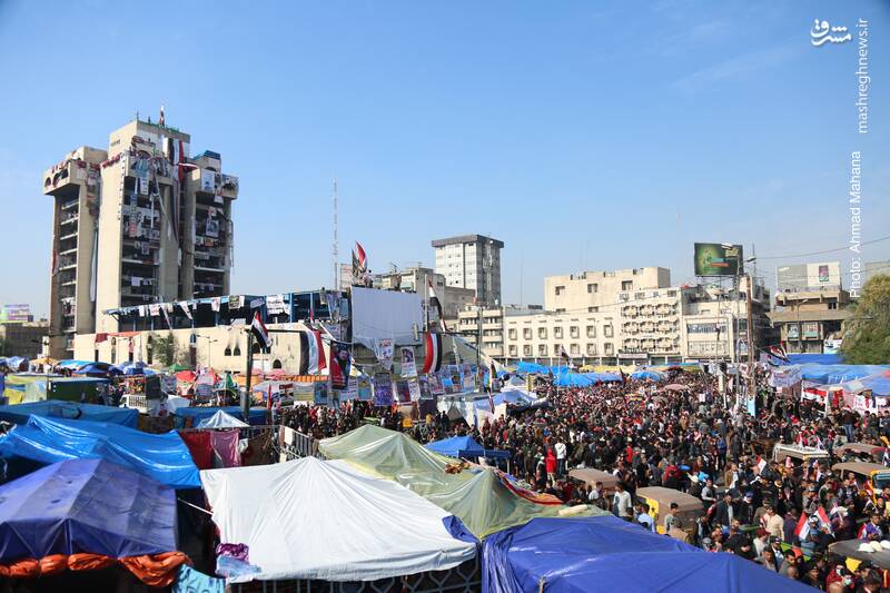 آخرین تصاویر شهید احمد المهنی از تظاهرات گسترده مردمی علیه آشوبگران در میدان التحریر عراق در ادامه است: