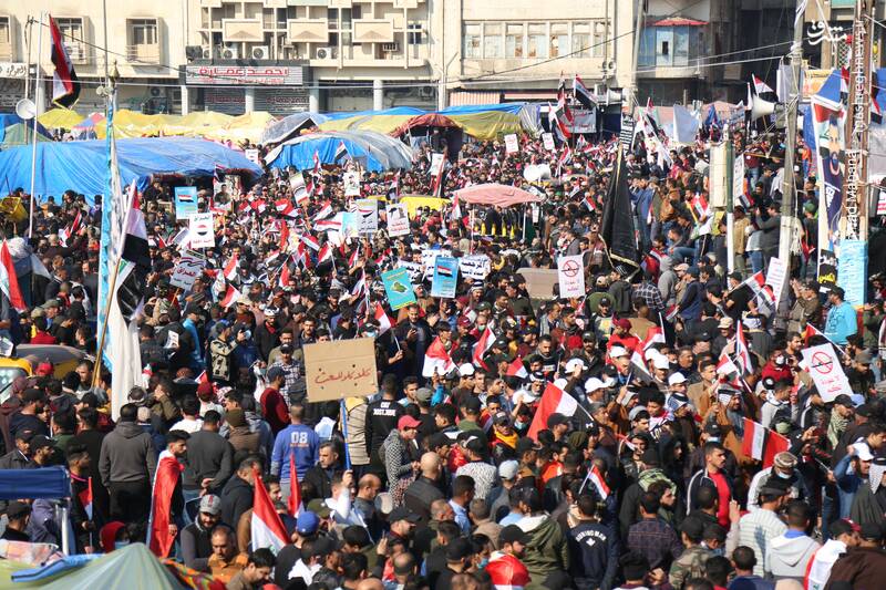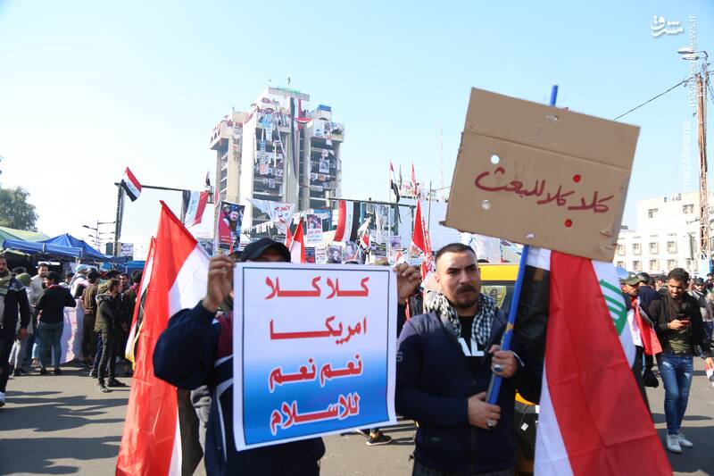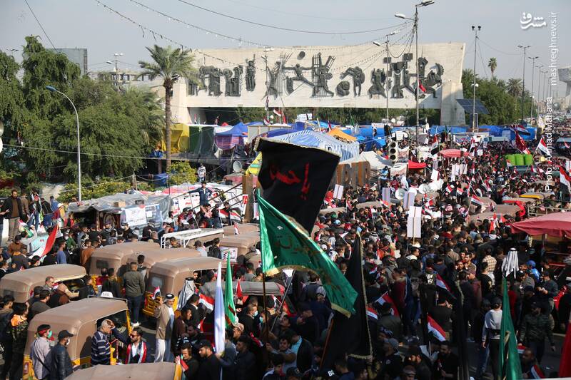 تظاهرات مردمی در مقابله با نفوذ آشوبگران در میدان التحریر بغداد