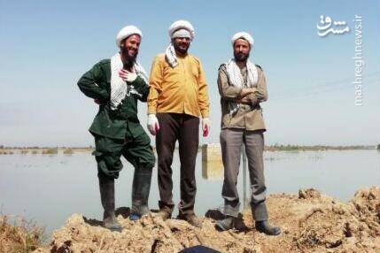 حجتالاسلام شامحمدی؛ امام جمعه فریدون شهر(نفر سمت راست)، حجتالاسلام اسکندری؛ امام جمعه بویین میان دشت (نفر وسط) و حجتالاسلام صابری امام جمعه دامنه اصفهان (نفر سمت چپ) به همراه شاگردان و همشهریانشان برای یاری مردم سیلزده به خوزستان آمدند.